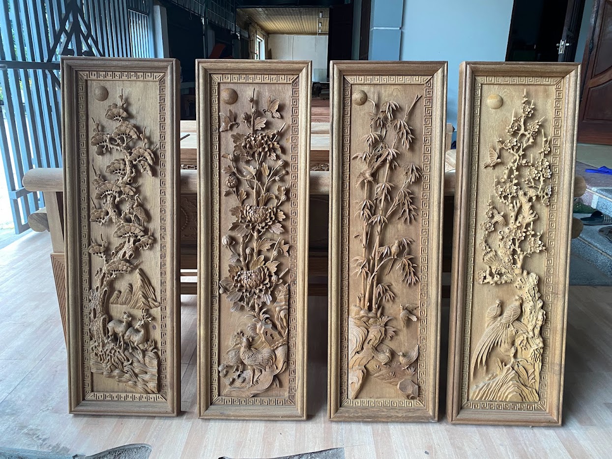 4.Một mảnh nghệ thuật trang trí: Ngoài các ý nghĩa tâm linh và tâm lý, bộ tranh tứ bằng gỗ còn là một mảnh nghệ thuật trang trí đẹp mắt. Nhờ vào sự tỉ mỉ và khéo léo trong việc chế tác từ gỗ, bộ tranh này có thể trở thành một điểm nhấn nghệ thuật trong không gian sống. Các họa tiết, chấm điểm và kỹ thuật chạm khắc trên gỗ thể hiện sự tinh tế và sáng tạo của nghệ nhân.