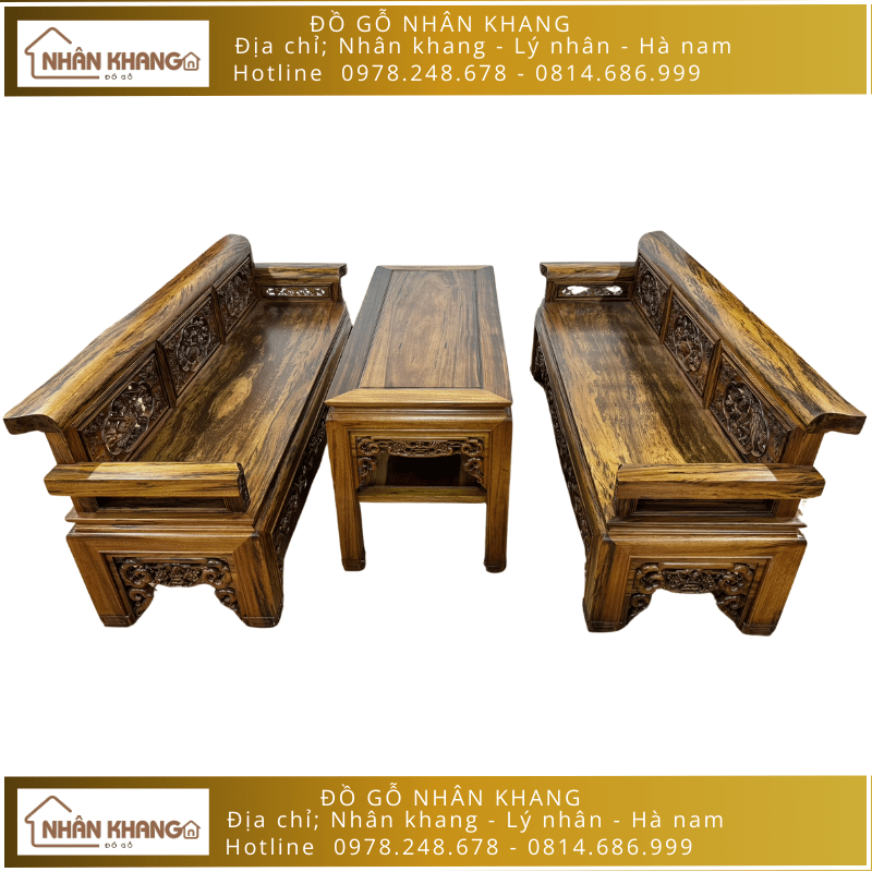 Bộ trường kỷ gỗ gụ chân quặp của Nhân Khang là sự hòa quyện giữa thiết kế tinh tế và sự tiện ích. Sản phẩm được lấy cảm hứng từ các mẫu bàn ghế trường kỷ truyền thống của người Việt Nam ta mang đến sự ấm áp và gần gũi cho không gian gia đình.