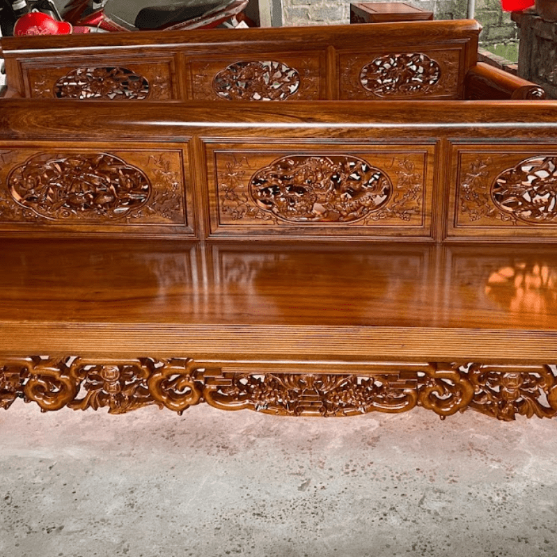 1. Thông tin sản phẩm bộ trường kỷ gỗ gụ đục sen cò |