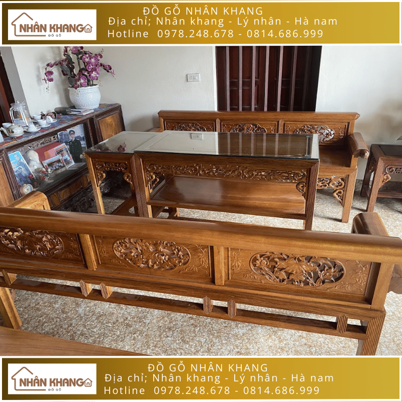 Bộ Trường Kỷ Gỗ Gụ Lào 9 Chỉ 197 Đục sen cò