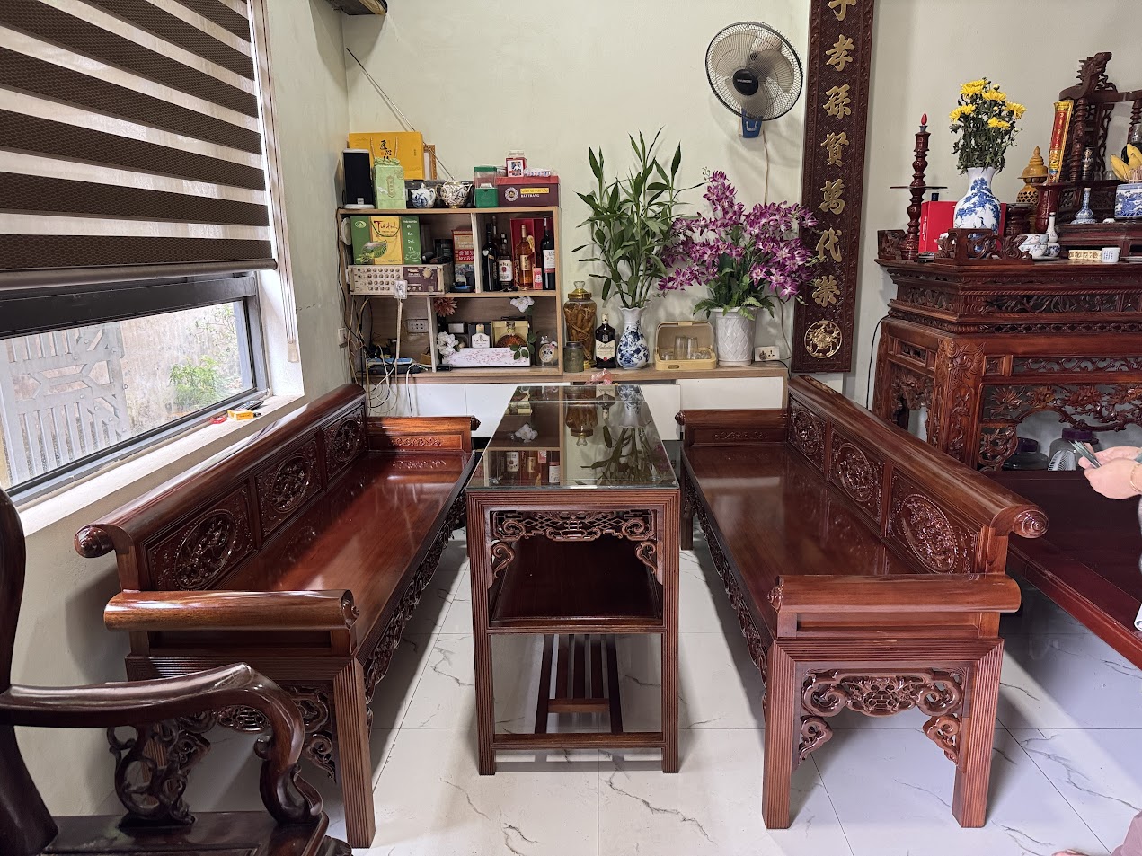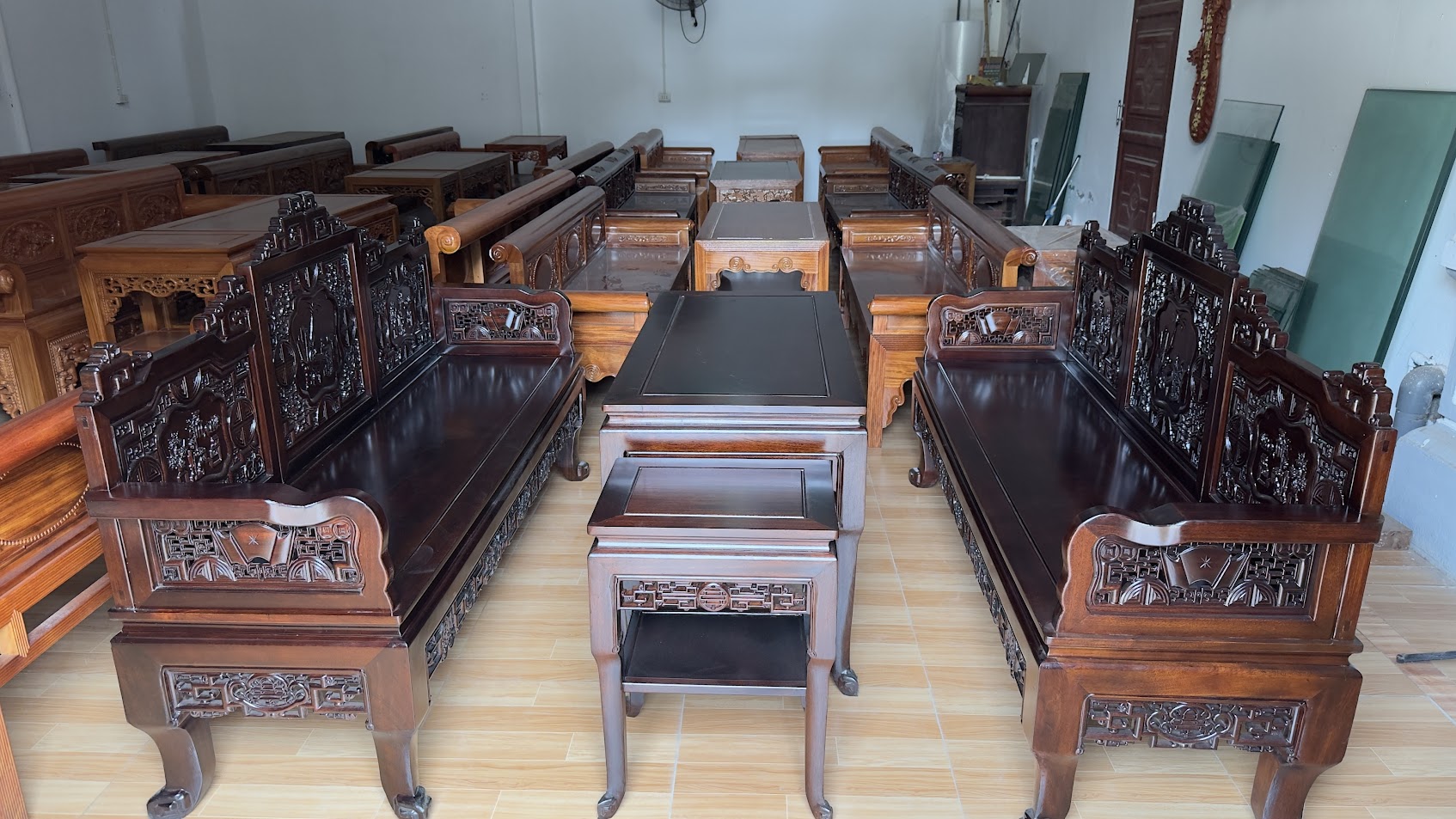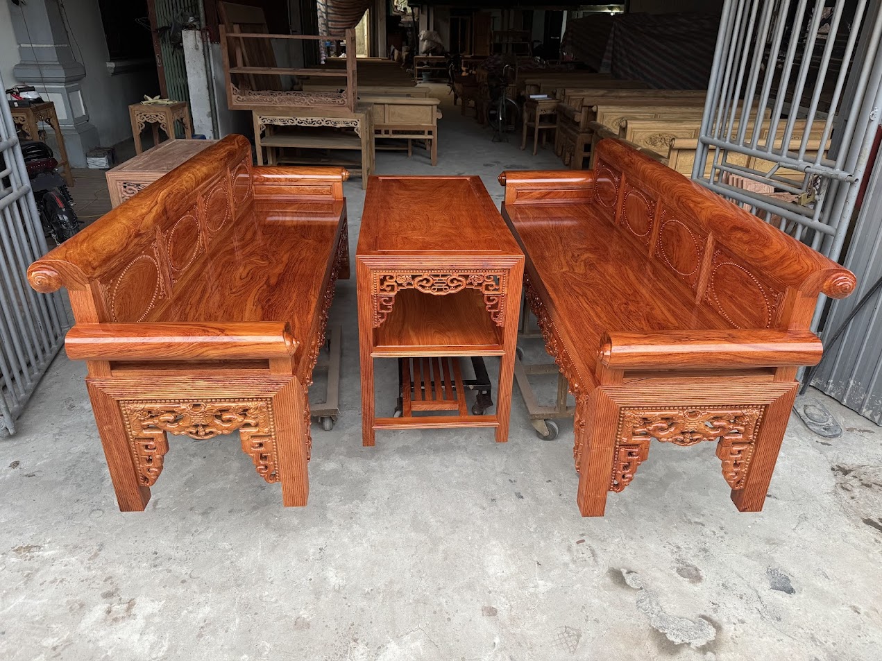 Bộ trường kỷ tam sơn gỗ gụ: Sang trọng, tinh tế, đậm chất xưa.